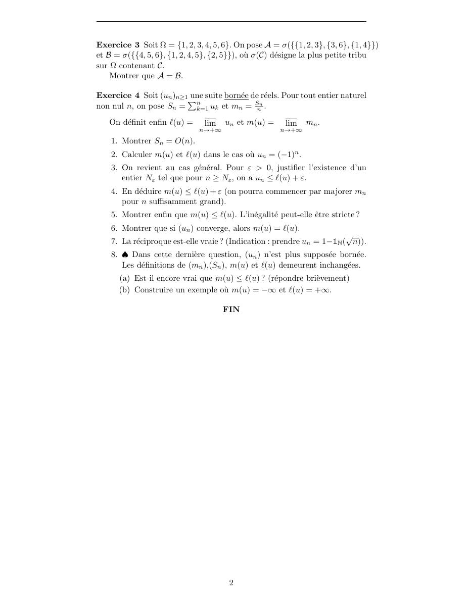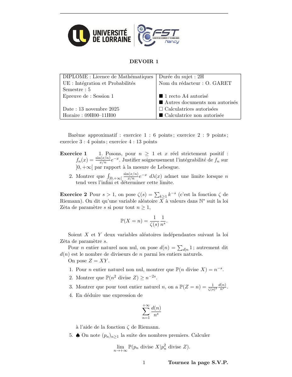 Licence 3 - Intégration et Probabilités
